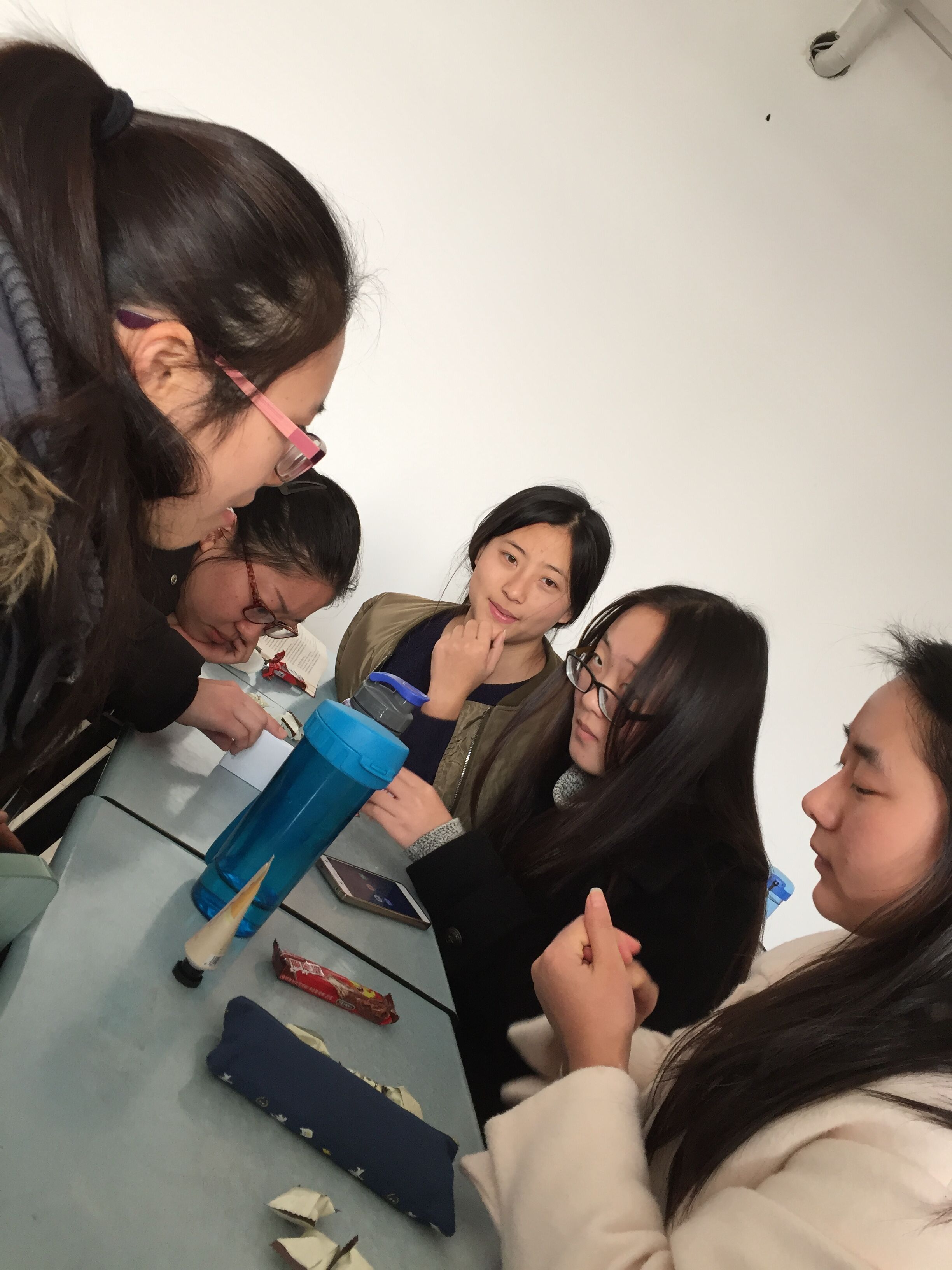 这次见习活动中,1班的同学都被分成不同的小组,以小组的形式前往各个学校。每个小组还会在见习学校上一堂课。课前紧张的准备,课后认真的分析。在交流的过程中,大家都表示意识到了自己的很多问题。之前所学的有些理念、理想化了,真实的课堂需要real communication,一堂课并不是背诵准备的台词就能完成的,关键在于如何调动学生加入课堂。这就需要教师去动脑筋,注意培养教育机智。另外,家常课与公开课不同之处就在于不必一次性上完一整节课的内容,随意性比较强,与同学们在课堂上学习到的或者是通过视频看到的公开课有许多不同,同学们意识到了理论与实践中的差异。除了共享见习体验外,同学们也就见习中有趣的事件进行交流,教室里笑声不断,