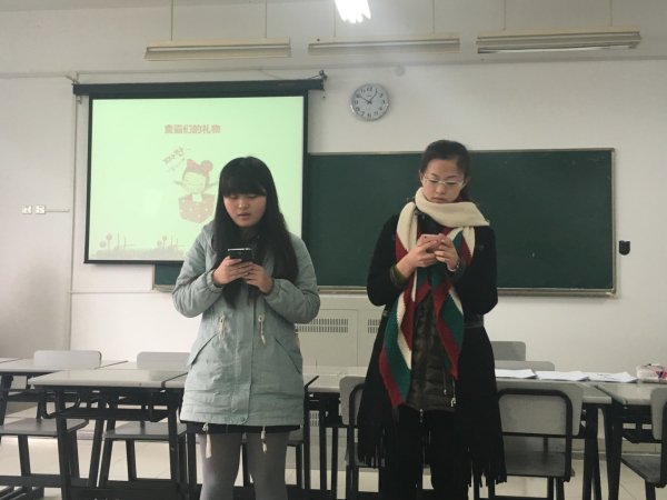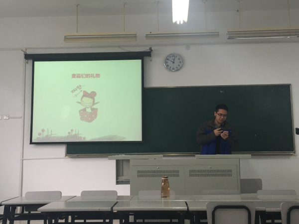 活动一开始,团支书何佩玲同学简单回顾了一学期以来的团支部活动,并提出了对团支部在期末以及明年的希冀。随后学生代表蒋韵佳同学、郭子隽同学与大家分享了自己在过去一个学期的成长与收获。分享结束后蒋韵佳同学献歌一曲,郭子隽同学与班长何珊也带来了《隐形的翅膀》与《有形的翅膀》联唱,为团日活动增添双旦的节日气氛。