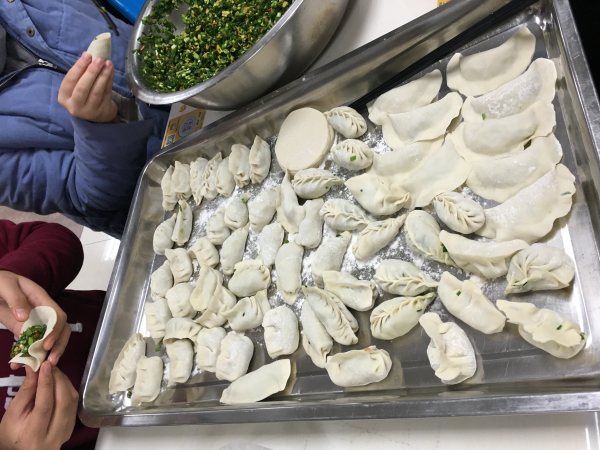 照顾到团队中的少数名族同学,活动小组特地把活动安排在民族餐厅。五点钟活动正式开始。大家洗手后开始包饺子。同学们的热情非常高,团队中也不乏包饺子能手,他们的成果令大家赞叹,包饺子经验较少的同学虽然一开始觉得自己做不好在旁边观看,但后来看见大家包饺子状态热火朝天,也跃跃欲试,并且积极参与期中。这次包饺子活动不仅是一次美食盛宴,更是一个学习和交流的平台,在包饺子的过程中,你会发现各种各样的包饺子方法和饺子类型,有精致饱满的,亦有萌丑奇特的...同学们在相互学习包饺子的同时也加深了彼此的了解。