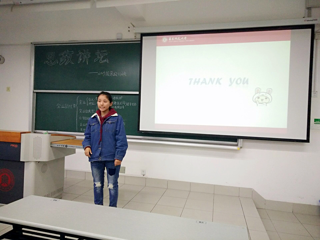 “叮叮当,叮叮当,铃儿响叮啷~~”伴随着圣诞节的欢快气氛,15级思政专业于12月23日(本周三)下午在二教210举行了本学期第二次思政讲坛。本次思政讲坛由巴桑琼达同学主持,第三和第四小组同学专讲,15级思政专业同学共同参与。