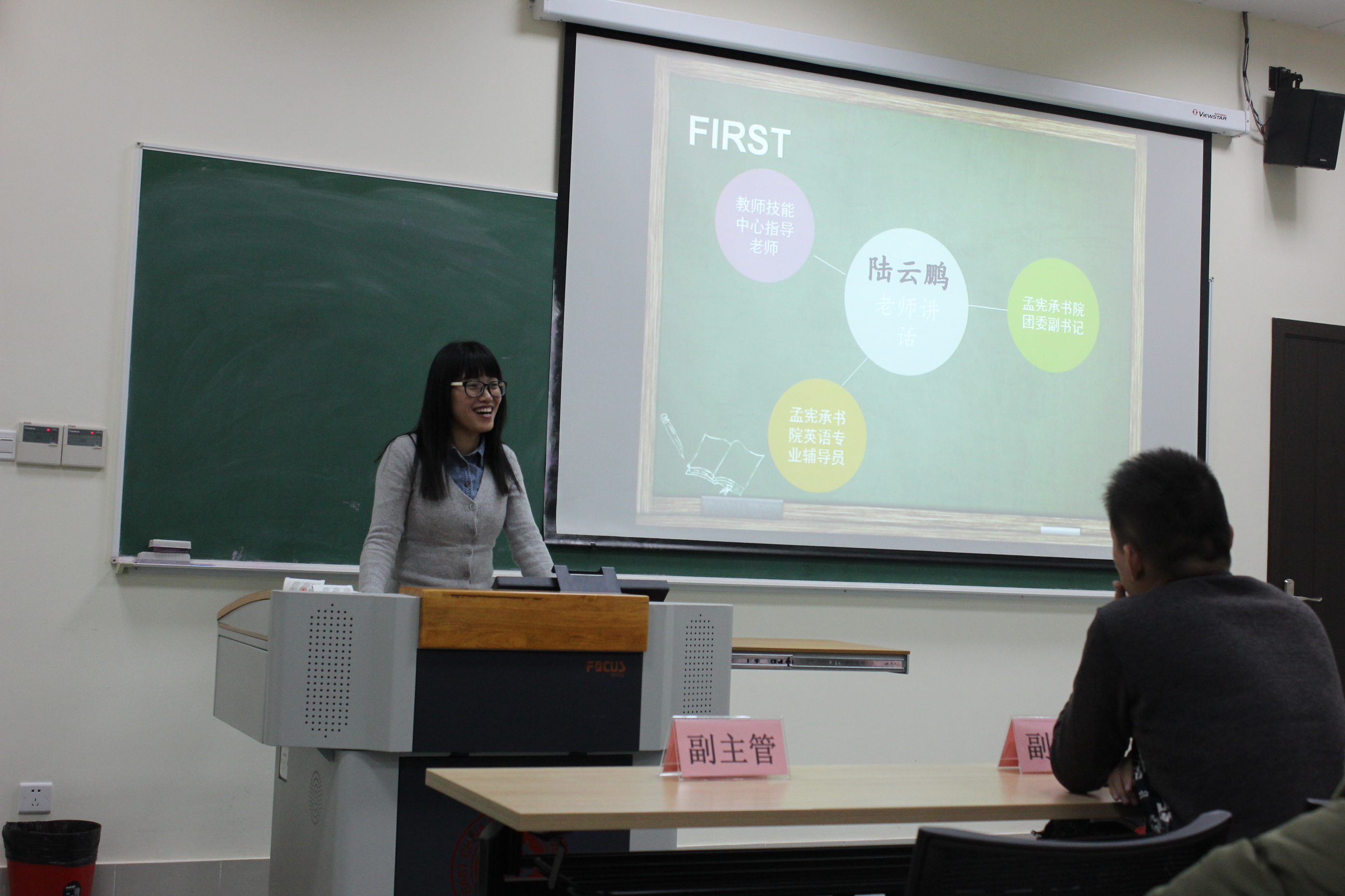 之后中心指导老师陆云鹏老师进行发言,她回顾了教师技能中心从开始到现在,一点一滴的成长。她的语言真诚,饱含了对大家的殷切期望,相信受到老师的鼓舞,每个人会更加积极热情地投入到工作中。
