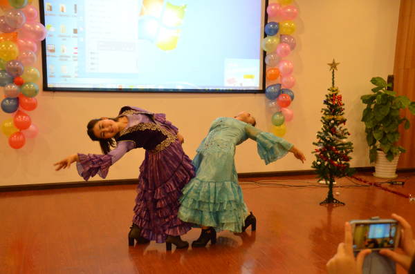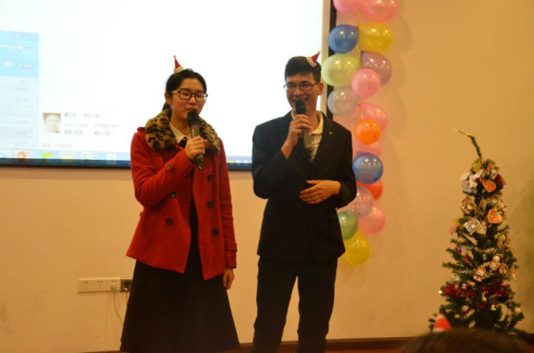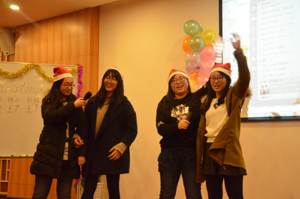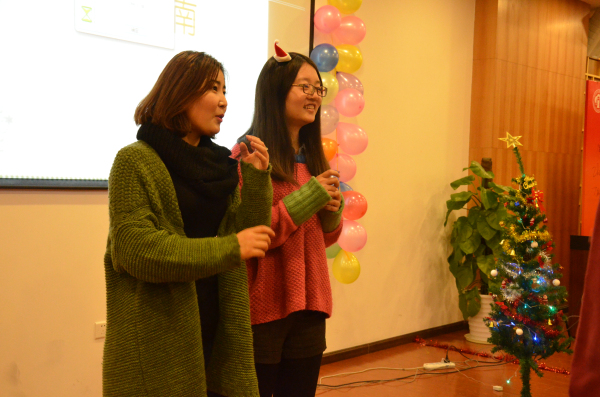 上次团日活动游戏“你说我猜”让不少同学意犹未尽,因此应同学们要求,在本次双旦活动中延续了上次的“你说我猜”—— “你说我猜2.0”,中英结合,展现英语系别样的风采。”You are my___.” ”Honey!” (答案是“destiny”)这样的对答让人忍俊不禁。在紧接着的“小咖秀”表演中,王越同学与静芳同学演绎的容嬷嬷与紫薇更是让全场爆笑不止。以及“猪八戒背媳妇”式走秀亦赢得了欢笑无数。