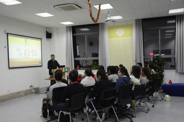 12 月24日,15级地理科学班的同学们在共享空间302上了主题为加强中国当代大学生制度自信的形势政治课。