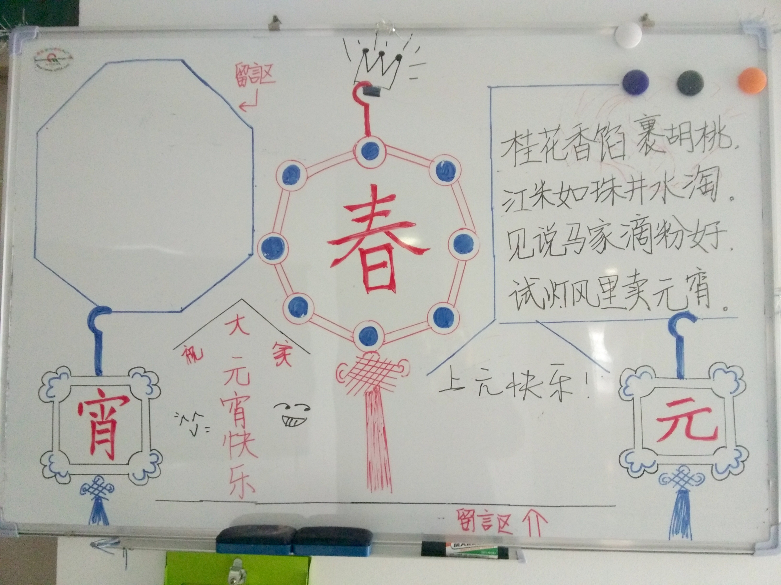 21号晚,刚刚返校的楼层长便开始了他们的送祝福工作,他们利用公告板,利用走访宿舍,向同学们传递新年的问候,以及元宵节的祝福。