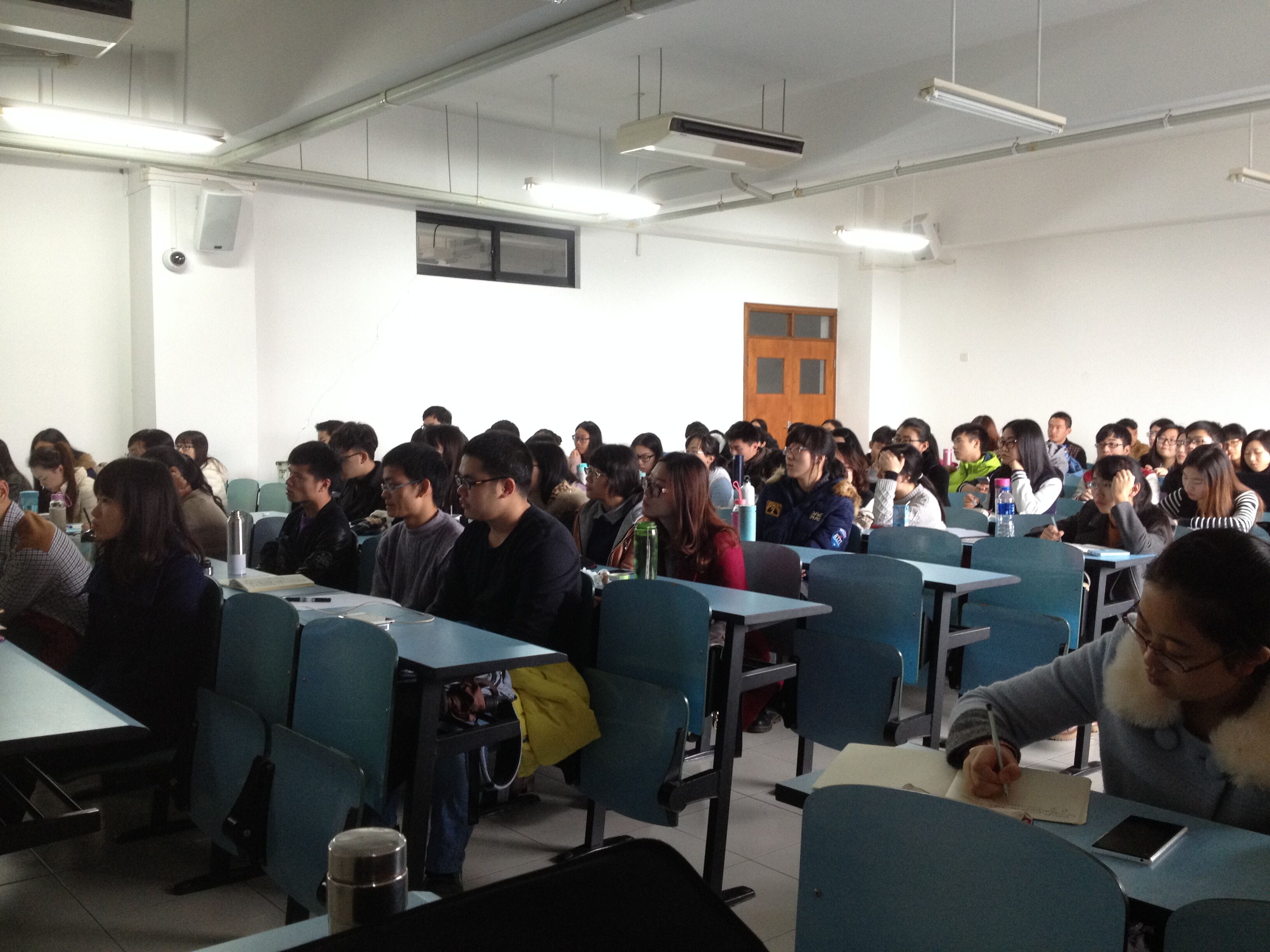 班会第二项议程,丁老师介绍了物理专业12级学长学姐们可喜的签约情况,勉励我们不要放松也不要太紧张,保持努力争取来年签约时也能创下骄人战绩。同学们认真了解学长学姐的签约情况,尤其对生源省份和有意愿的学校十分关注,可以看到大家对于就业重视程度颇高。