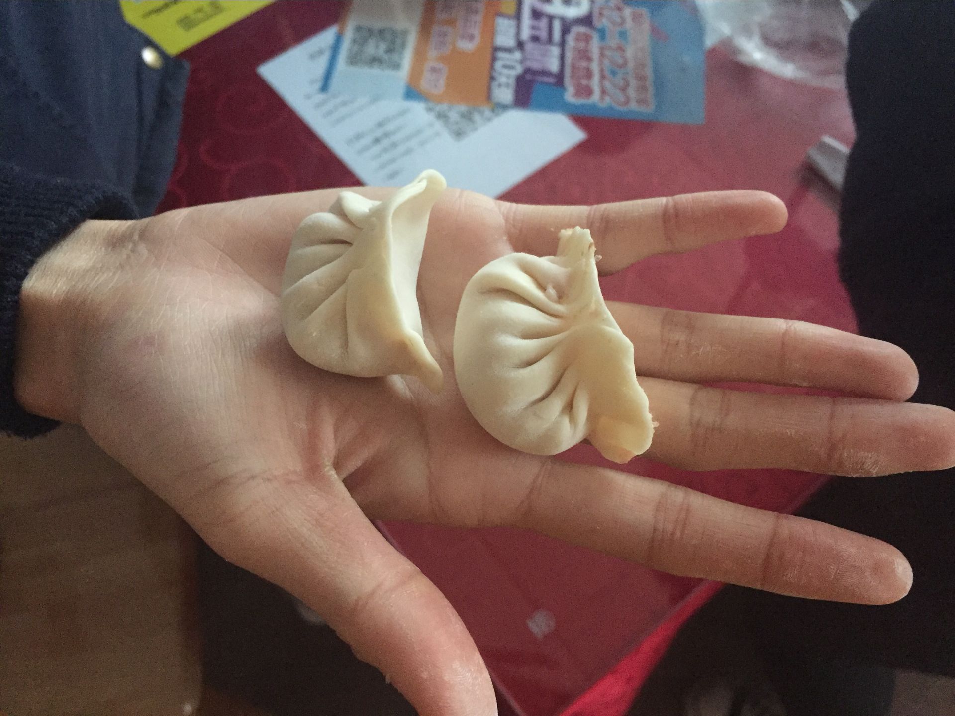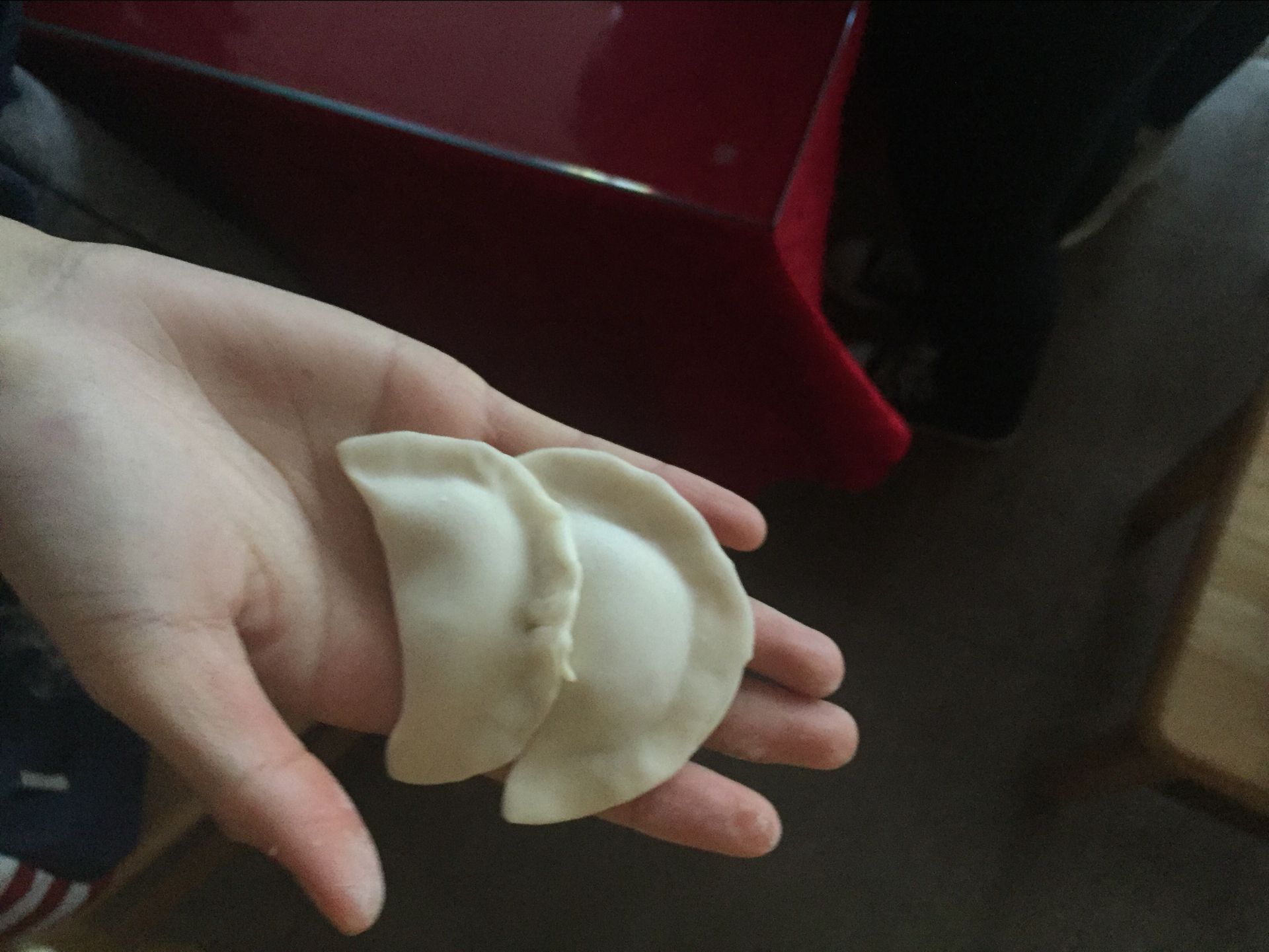 但真正亲身实战之后,场面可谓是笑料百出。有的同学发现饺子皮的粘性不太好,意图‘使用武力’解决问题,在一旁默默使劲按着饺子皮边缘,最后又默默的将‘咧嘴大笑’的‘成品’饺子混入盘子之中;有的同学豪迈地从盘里舀了一大勺馅料放在饺子皮上,然后看着怎么包都‘露馅’的饺子,自言自语道:‘这饺子皮也太小了,我们家的就不这样……’;有的同学回想着微博上看过的教程,满怀着谜一般的自信,仿佛是金戈铁马中那运筹帷幄的军师,从容淡定,但最终看着那奇形怪状的饺子开始怀疑人生……