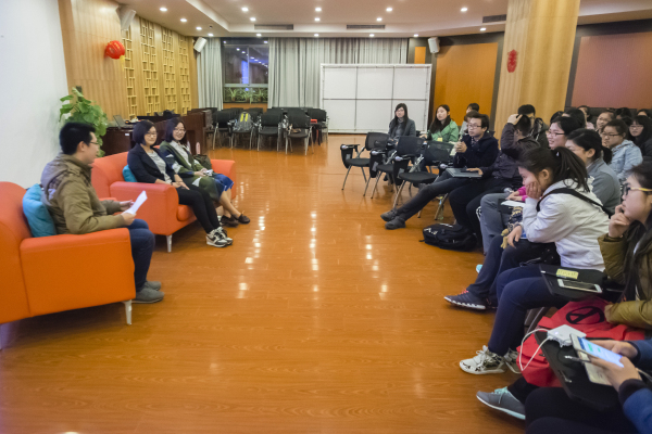交流咨询会进入了自由提问阶段,李桦老师耐心地为15级新生解释了学分转换的问题、延迟毕业和先修高年级学分等等问题。随后怀着强烈交流欲望的同学纷纷向三位学长学姐提问。在你问我答之间,在孟院小小的四方天地间,温情和关怀就在孟院人之间悄滋暗长,这是孟院人的经验传承,也是对“学高为师,身正为范”的践行和叩问。