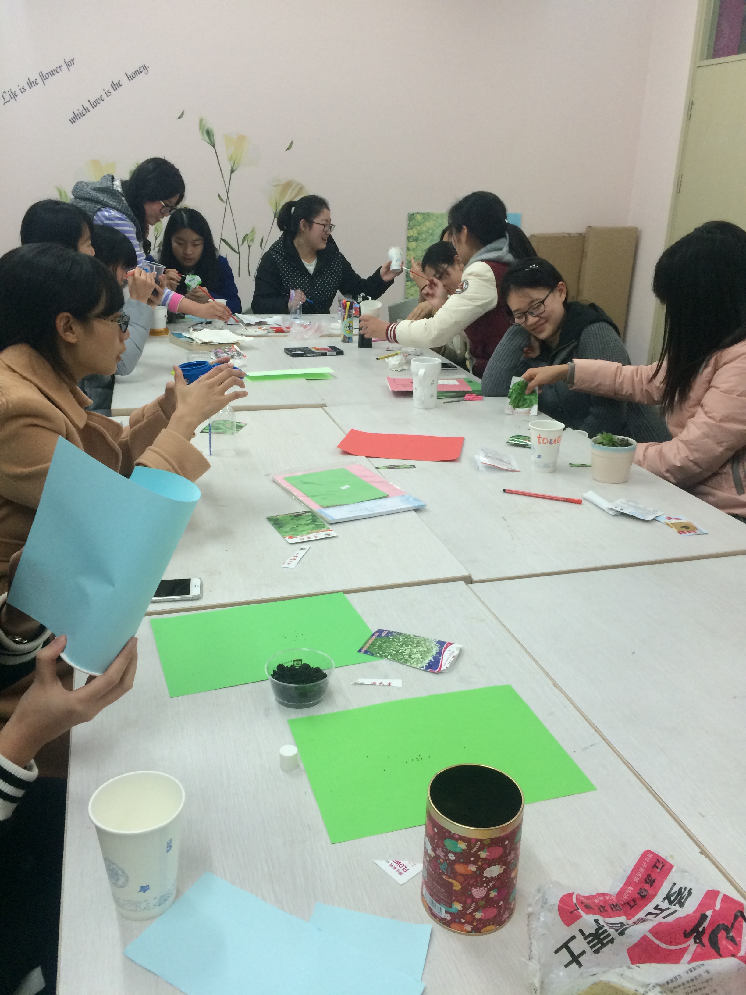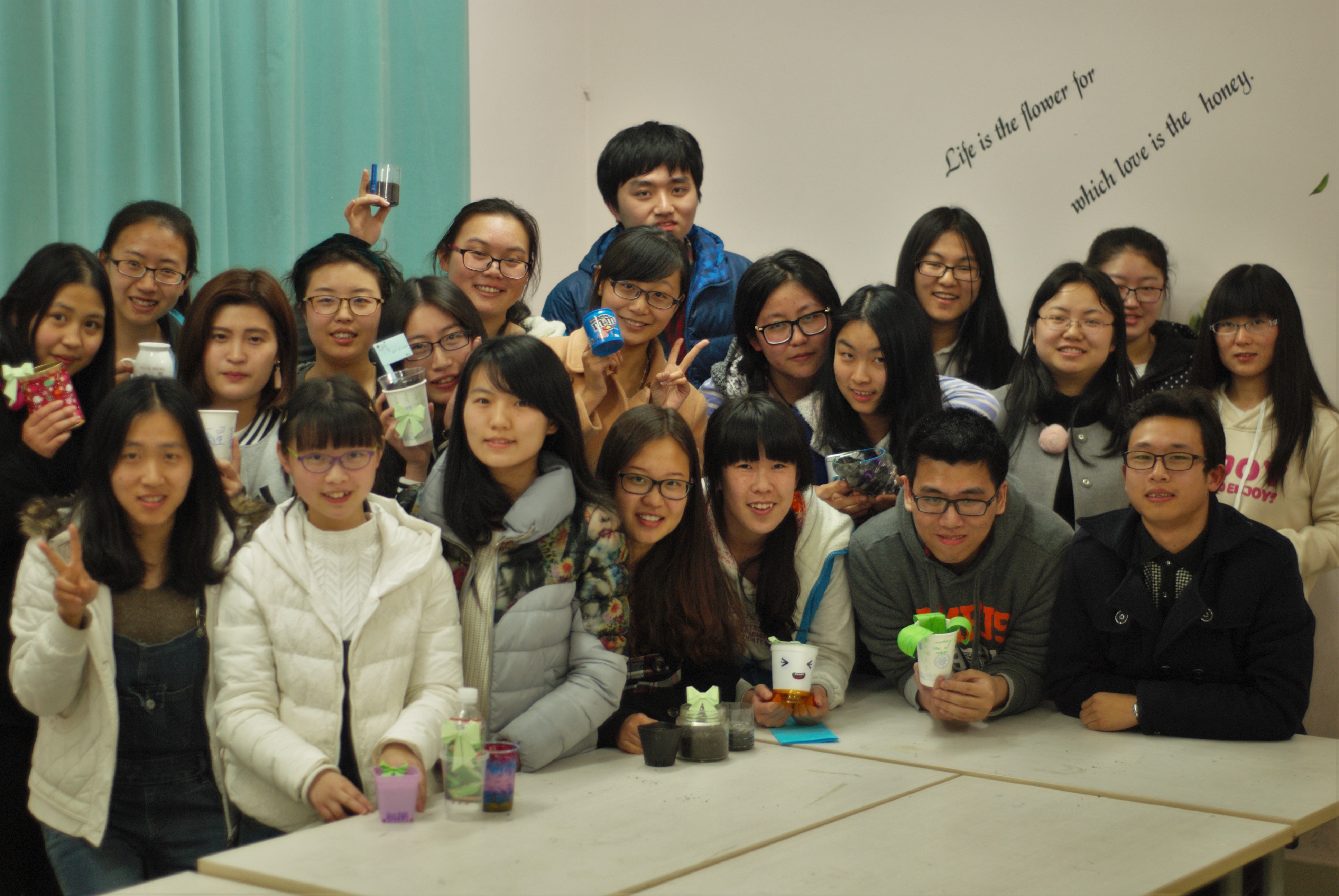 21点整,第二轮活动在四号楼活动室继续举办。精彩有趣的暖场游戏很快让大家活跃起来,随后同学们认领了自己心仪的花种,开始精心地装扮自己的“花盆”。这些小“花盆”大多出自同学们的巧手,有的是喝剩的饮料瓶,有的是喝剩的咖啡杯……无一例外的是,在大家的奇妙构想后,一个个“出身卑微”的“花盆”竟也转眼间出落成一个个精致小巧的工艺品。更有心灵手巧的同学,现场教大家叠蝴蝶结装点“花盆”,尽显中文人的灵秀慧气。一张映满同学们灿烂笑脸的合照,为这次团日活动画上了圆满的句号。