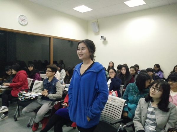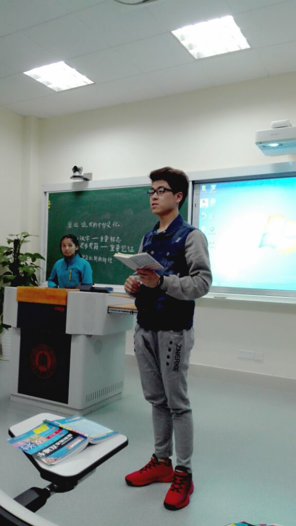 在主持人巴桑琼达进行简短的介绍后,第五组的刘槿同学首先登上讲台为我们授课,她为我们教授的是文化生活中《源远流长的中华文化》一课的内容。简要回顾古代四大文明后自然地引入了该堂课的主题,简介精致的PPT,流畅的讲述,自然大方的教态,刘槿同学的授课赢得了同学们的一致好评。