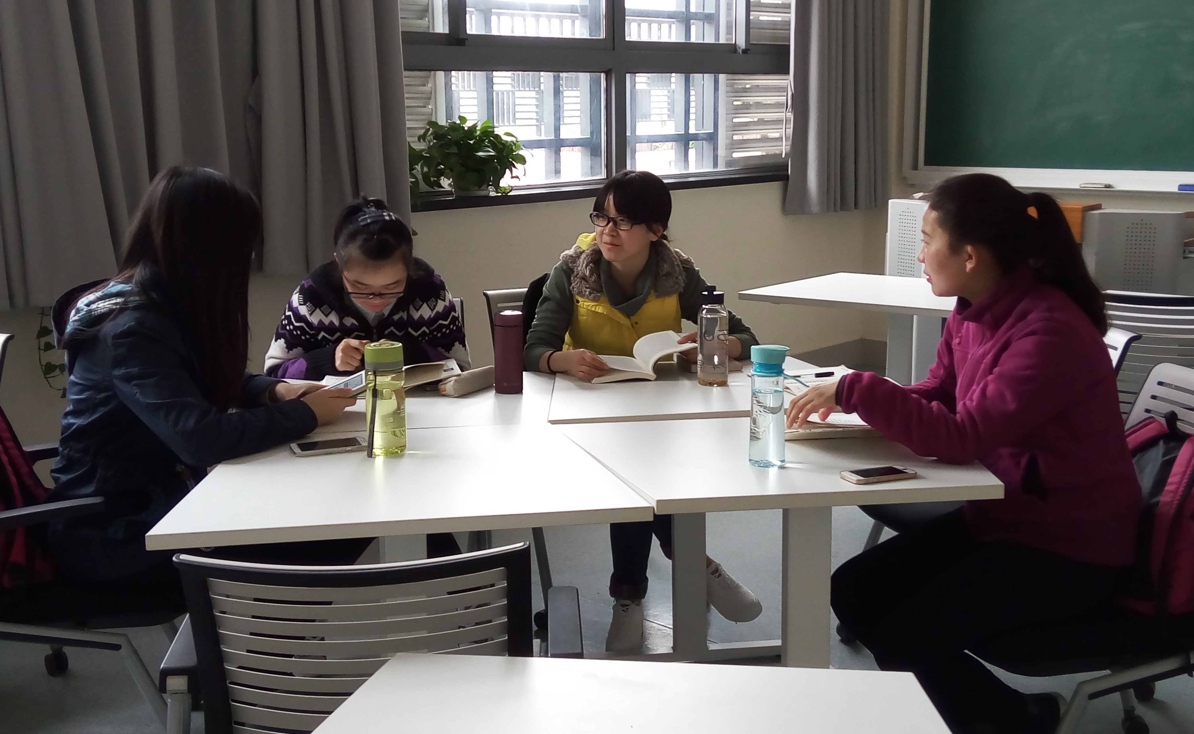 天朗气清,惠风和畅,书香阵阵。3月22号的下午一点,14级思想政治教育专业的5名热爱读书的小伙伴在共享空间211召开了2015学年第二学期第一次质文读书会。在对于英伦才子型作家“阿兰·德波顿”的热烈讨论中,一场别开生面的质文读书会就这样拉开了序幕。