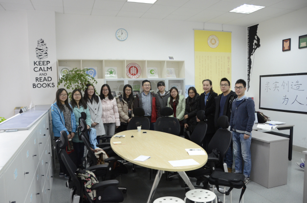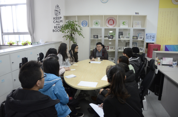 2016年3月23日下午12:40, 2012级地理科学专业在共享空间306室举行了第五周人生导师活动。本次活动主要包含两项内容,一项是优秀毕业生的评选以及毕业论文指导。优秀毕业生评定小组由老师和学生两部分组成,其中导师周立旻教授和辅导员益建芳老师作为教师代表,李小倩、陈雪莹、赵盛池、郝晓东等同学作为学生代表。