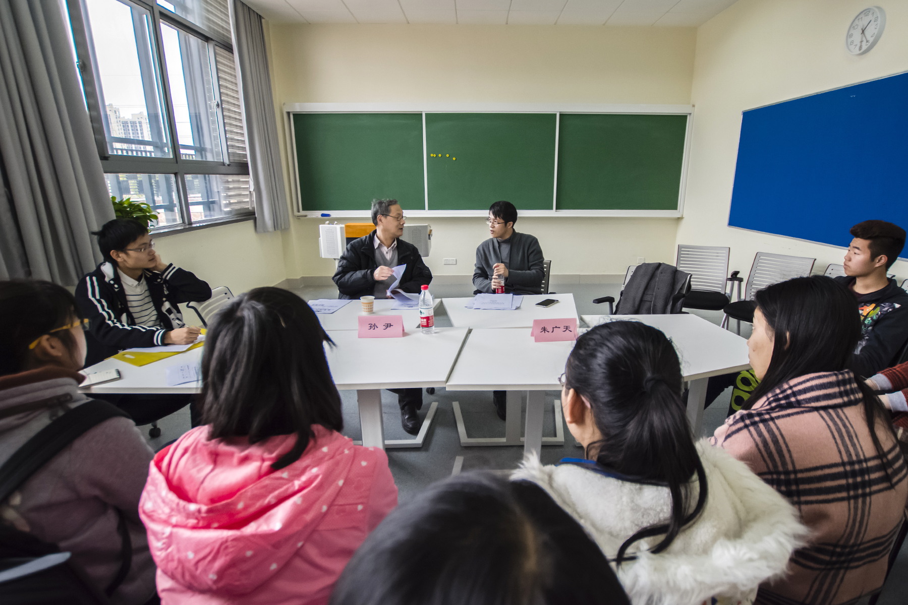 物理专场的孙尹和朱广天老师不仅仅对于各个项目进行了较为详细的分析与建议,例如实验设计中变量控制的问题以及项目与教学的紧密联系性与可操作性,还结合自己在教学中的实践,推荐了参考书目,指出了实践操作的具体方法。此外,沙龙现场还有许多前来观摩的15级同学,老师们回答了其提出的许多关于科研的疑问,并鼓励他们扎实专业知识,进行科研尝试。