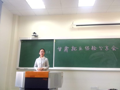为更好的推进2017届免费师范生的就业工作,2016年4月1日下午,书院就业推进办公室举办甘肃省就业经验分享会,会议邀请甘肃籍2016届免费师范生代表为17届学弟学妹们分享实习就业经验、分析甘肃省免费师范生就业政策与形势,书院全体17届甘肃籍免费师范生参加了此次分享会。