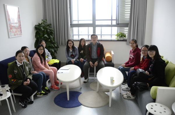 周老师亲切的询问大家最近的学习情况,同学们也纷纷告诉周老师我们对于现有课程安排和考试的想法。首先说到某些课程内容缺乏吸引力,实验课的内容与讲授的知识没有关联。周老师解释说本届经过了改革,课程安排变动导致一些同学不适应,希望我们能尽力谅解,他们也会在之后的工作中继续调整,为大家更好更快的学习提供条件。