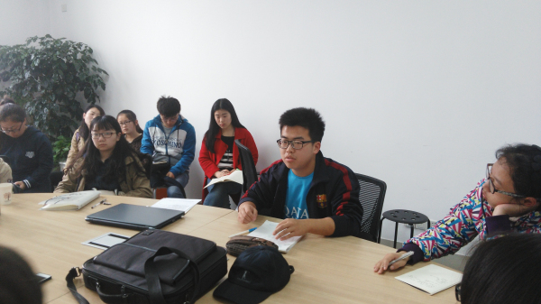 2016年4月6日,星期三下午。虽然同一时间有非常多的活动正在进行,但是竺洪波老师和杨焄老师抽出时间邀请大家参加的联合导师活动却依然人气旺盛。小小的房间里挤下了二十几个同学,大部分是15级中文专业的同学,也有一小部分的学姐。