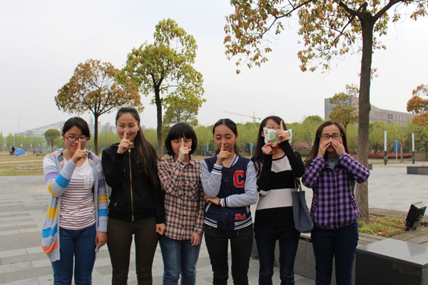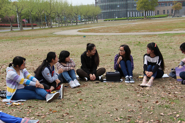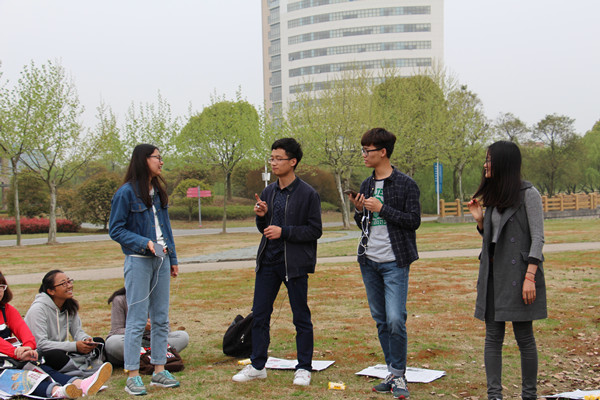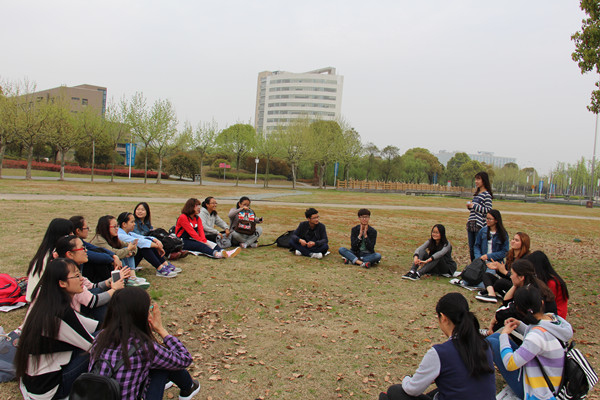 暮春四月的下午,我们来到图书馆前大草坪,围坐成一圈,开展一系列的游戏,增进同学们之间的感情。第一个游戏是方言传话。两位同民族、同地区同学站在第一位和最后一位,中间是三位其他地区的同学。“说慢点……没听清!”“再说一遍吧!”维语的发音不是每个人都会,一个很简单的词在传递过程中完全走了调,最后一位维族同学玛迪娜百思不得其解,直到帕热丹穆同学解开谜底,她才反应过来是“憎恨”的意思。本来帕热丹穆同学是说“爱情与憎恨”,被大家“投诉”说太长了,硬生生地改成了“憎恨”。藏族同学传递的是“我爱你”的藏语句子,上海同学传递的是“额头碰到天花板”的沪语版,寓意“幸运的在一起”。然而三组同学都没能完成传递,最后一位同学总是云里雾里。这个热身小游戏让大家开怀大笑,在和煦的春风里,爽朗的笑声感染着每一个人。也让同学们对民族团结有了更深的理解。