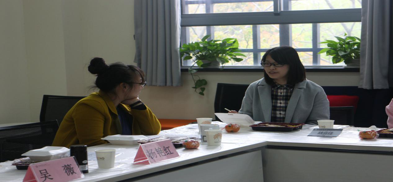 午餐会伊始,吴薇老师表达了她对文建中心的工作成果的认可与赞许,提出想认识一下各位同学。文建中心主管夏浩轩同学向老师们详细地介绍了他们中心的分工以及到场各个同学的负责范围。随后,吴薇老师又向同学们提出问题:文建中心任务重人数少,大家要花很多时间在部门里,那大家是如何调节学习与工作的呢?宫晓瑄同学说做文建中心的工作虽然累,但是大家有优秀的团队协作精神,任务重也不是什么大问题了。她还说到自己在文建中心任职这么久,从小干事到现在的副主管,是一种收获与成长。吴院长感慨地说,书院给了同学们发展自我的平台,给了同学们成就感,这就是书院最根本的目的。