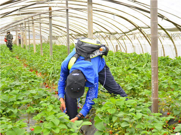 大棚中垄与垄之间的道路很狭窄,同学们为了摘到草莓也是拼了,尽显身体之灵活,动作之优雅,有的深深地猫下腰,来个“蛟龙探海”;有的大大跨出一步,来个“灵蛇出洞”;有的伸长了胳膊,来个“猴子捞月”;有的左右开工,来个“左手右手一个慢动作”……
