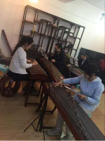 听完了同学的示范之后,大家产生了练习的兴趣和热情,纷纷积极的练习起来。大概练习了三十分钟后,我们进行了成果的展示,起先大家都有点紧张,但很快都放开了,热烈的讨论着弹奏的要领。在大家的问题都解决得差不多之后,我们进行了自由练习,主要是《丁香花》与《枉凝眉》这两首曲目的练习,练习过程中有小老师来为大家解答疑惑。同学们纷纷在练习中感受到了古筝和我国传统音乐的魅力,让自己的身心都得到了熏陶,大家纷纷表示希望多一些这样有意义的活动。