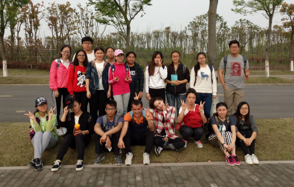 2016年4月13日下午13:00,生物专业的所有同学在实验B楼门前集合,为天目山野外实习做准备。我们在李宏庆老师及其他四位老师的带领下,骑行至滨江公园,学习和分辨植物种类。