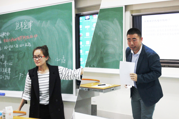 物理专场的学长和学姐以各自的风格,为同学们将来踏上工作岗位提供了两种不同的建议。王博文学长首先为大家带来自由落体运动的授课。他先介绍了这一问题的历史研究,使大家拥有一颗勇于探索的心,之后用石头纸片实验演示自由落体运动,给学生最直观的感受。课堂中穿插的小组讨论更是提高了听课同学的积极性,让大家乐于学习,主动学习。随后蔡新月学姐带来的习题课讲解则更为实际,学姐采用一种大众模式,为我们展示了一节平常却最实用的课程,给了同学们很大的启发。