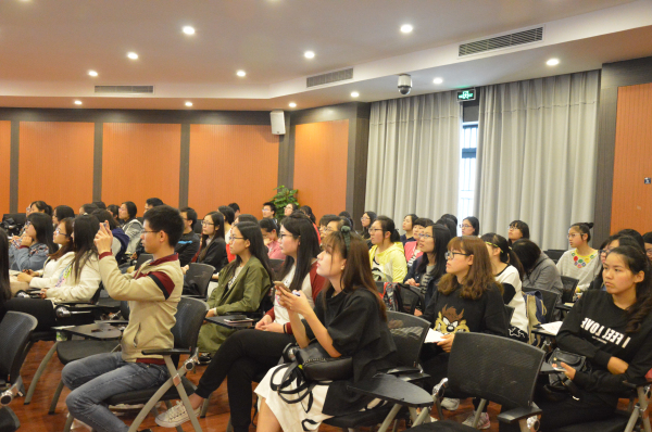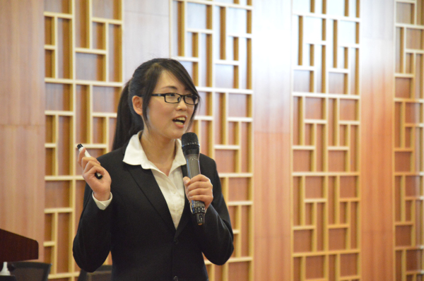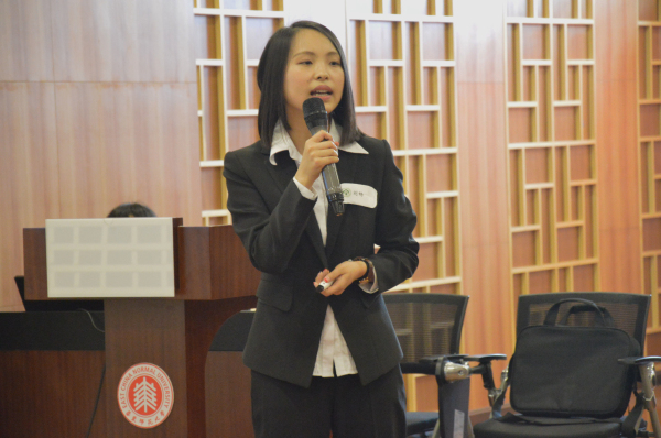 13级数学与应用数学专业的杜金金的讲演以求职面试的新颖形式进行,令人耳目一新。无论是为一堂课备课的72小时,还是30厘米厚的草稿纸,抑或是350页的科研结果;无论是上海西郊学校的项目,还是美国夏令营的锻炼,还是UBC的交流,都让他加深了对于数学学科和教师职业的热爱。