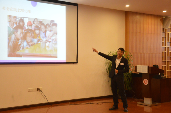 来自12级物理专业的念智伟的榜样故事充满感动。来自云南省大山里的他,更懂得怎样回馈故乡。简洁的PPT上满载着自己到云南山村支教的照片,他忘不了孩子们需要走十几公里山路上学,更忘不了孩子们对知识渴求的眼神。念智伟每年利用寒暑假到山村的学校里讲课,这也会是他一直坚持下去的事。