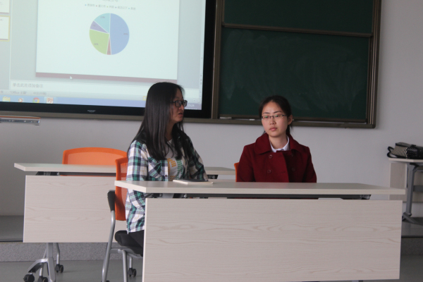 最后,12级的刘路路学姐、郭林学姐依次为大家介绍了实习学校,实习期间的注意事项以及就业形势等多方面的情况。大家也针对自己的具体情况,向学姐提问,均得到了学姐的解答。