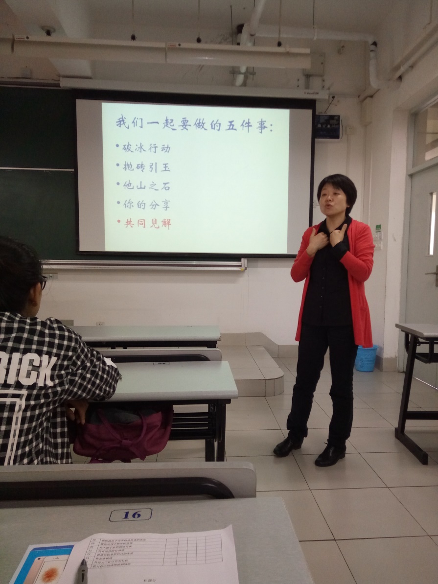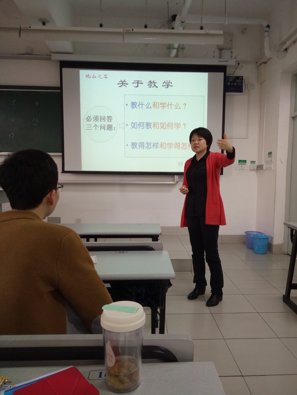 朱老师声音温柔,一身红色的外套犹如战衣,挥斥方遒,侃侃而谈,耐心细致的从五个环节向我们讲授备课的学问。