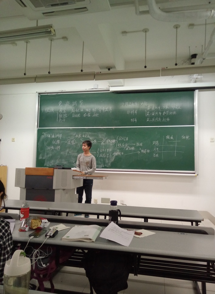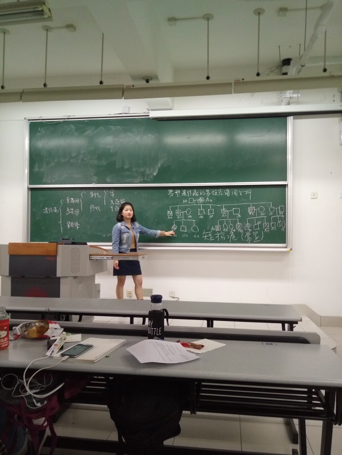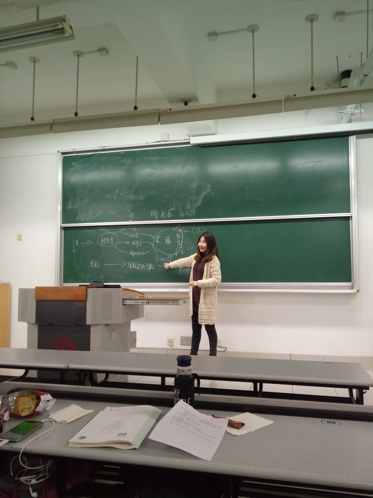 朱老师分享了自己多年的教学心得后,五位同学依次上台进行了每人10~15分钟的试讲。主题涉及“细胞的能量通货——ATP”、“光合作用”、“伴性遗传”、“免疫调节”等多个方面,朱老师和栾老师依照每位同学的试讲风格,针对优点与缺点给出宝贵的意见。台上的同学讲得激昂,台下的同学听得认真,两位老师点评得一针见血。这个环节可谓是把本次讲座的气氛推向了高潮。