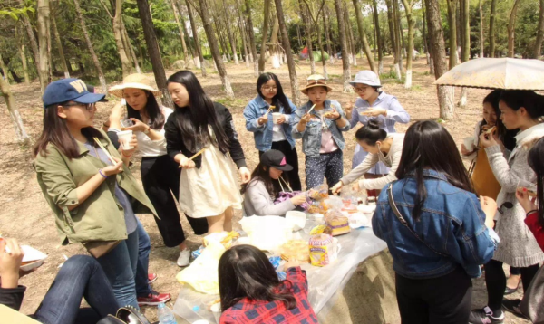 到了滨江公园后,大家开始搭建帐篷,生火,准备食材。每个同学都分分拿出自己准备的食物与大家分享。在大家的共同努力下,一切都准备就绪了。之后许多同学开始大显身手了,她们为大家烧烤,煮面,这手艺丝毫不亚于专业的大厨,受到了一致的好评。此外大家还开展了一系列的游戏,使得整个春游丰富多彩。