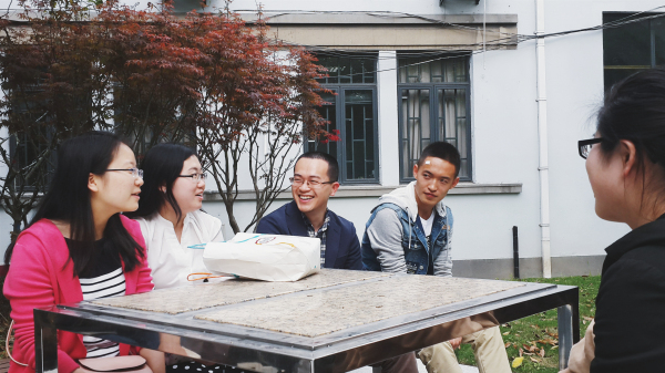 4月16日下午,12级物理师范辅导员温旭老师抽空到中北校区与在此进行毕业论文实验的17名同学们开一个特别班会。同学们和温老师相约物理楼红房前,趁着美好和煦的春光促膝长谈。