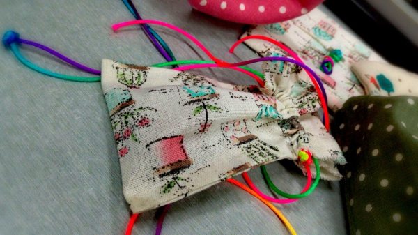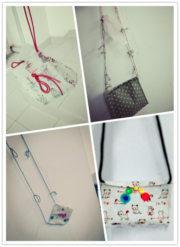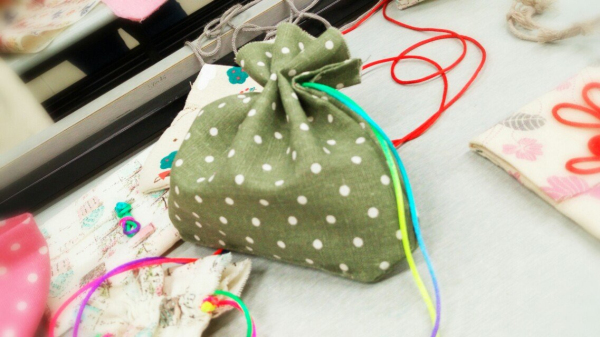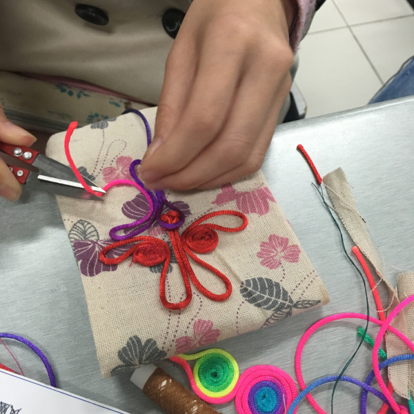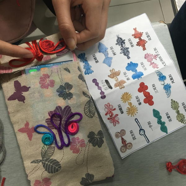 将扣坨制作完成后,就是发挥想象力以及动手能力的时间。大家心灵手巧,创造出许多美丽又富有创意的盘扣,像葫芦扣,蝴蝶扣等等。既然做出了美丽可爱的盘扣,那么就需要做出一个小布包来搭配盘扣。这时候大家又发挥无限大的脑洞,制作出了抽绳包,手机包甚至小药包。