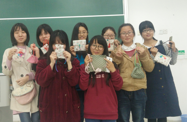 这些美丽的盘扣装饰小包都是大家在三个小时的用心制作时间中完成的。在学会盘扣扣坨的制作开始制作盘扣以及小布包的过程中,大家一边畅聊学习生活趣事,一边动手制作。活动结束后大家一致认为这个在这个周末的小尾巴里,抛掉学习上的烦恼,潜心地完成一个小小的手工作品,真的带来了很大的放松。