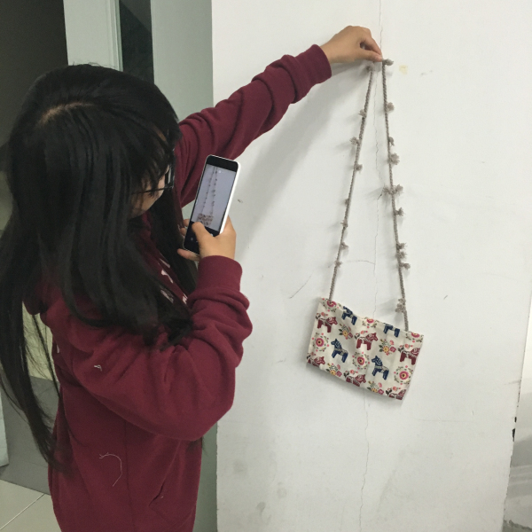最后,大家拿着完成的作品,相约在之后的春日里,可以拿着自己做出来的小包,在闵行春日的校园里衣袭华美,“漫度时光”。