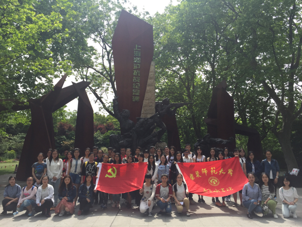师生党员和入党积极分子在淞沪抗战纪念碑下合照留念