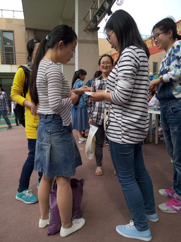 项目组早早地到现场布置场地、进行材料准备。准备好后,项目组的小伙伴们开始分发宣传单,同学们陆续被吸引到摊位前。