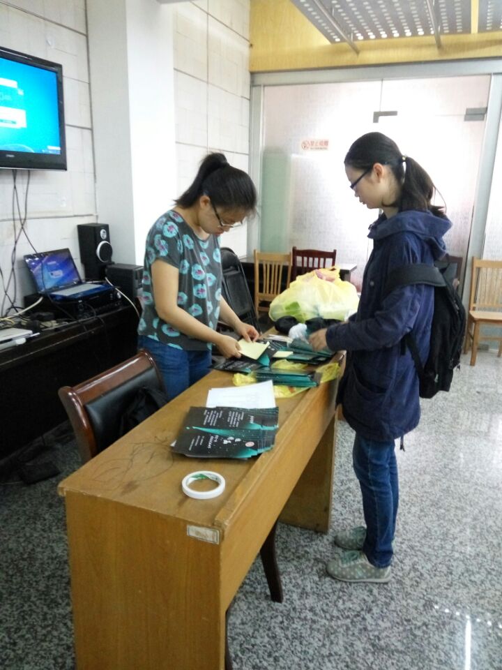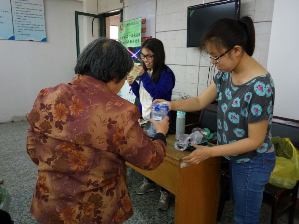 活动进行时,两个项目组都设计了知识竞猜环节并为参加活动的居民发放奖品,并且对填写问卷的居民认真解答疑问,然后通过视频和小实验的形式给居民演示。最后,进行现场的宣传呼吁大家正确的进行防霾和应对激光危害。