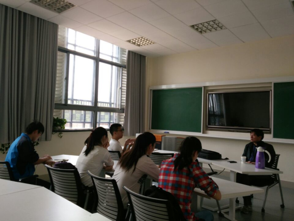 老师接下来根据同学的提问,针对我们的专业课学习提出了指导建议。他很欣慰地说道他很开心看到大家都很有学习热诚。对于同学们在专业课学习上面的困惑。老师结合自己的求学经历做了精彩的讲述。他告诉我们,读书其实是一个不断提出问题和解决问题的过程。在学习过程中能够发现自己知之甚少是一件好事情。老师还强调,要学会利用各种资源获得学习资料,表达自己的学术观点,要学会培养独立思维的能力,不要迷信权威。