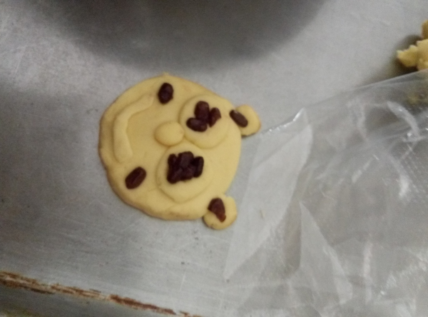 看着大家满怀激情的样子,班长任慧璟便利索的拿出事前准备的塑料手套,让大家一一带上后,同学们便迫不及待得开始了一段没有终点的脑洞之旅……蝴蝶结,月亮,星星,十字架,爱心等等,这些还算是相对正常的作品,而大鱼、火山等作品更是在一票作品中脱颖而出。同学们用自己的作品向我们展示了什么叫做“心有多大,脑洞就有多大”,更是展现出了与孩童相媲美的令人赞叹的创造力与想象力。期间有的同学甚至是不满足于材料的种类,友情赞助了一包巧克力,为我们的烘焙增添了不少趣味,更为了学霸余文捷的大作“火山爆发”提供的思路。