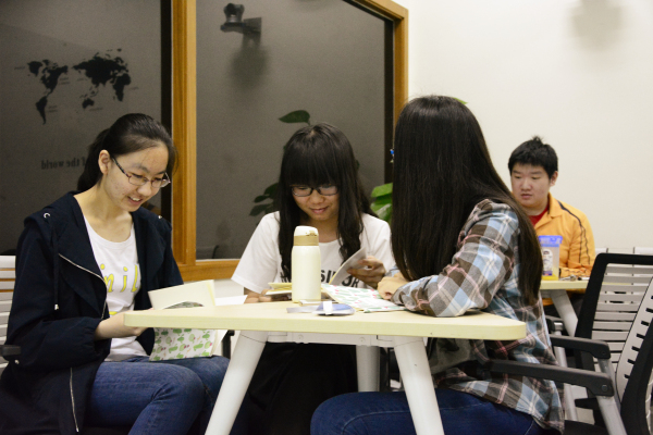 活动开始前,工作人员先将桌椅排成小组形式,分成四个小组,随后前来聆听讲座的同学们也都陆续到场,围桌而坐,笑容满面。