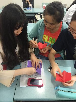 最后,同学们跟着教程,为自己的母亲亲手折纸花,红色的康乃馨。国际上献给母亲的花是康乃馨,它在纤细青翠的花茎上,开着鲜艳美丽的花朵,花瓣紧凑而不易凋落,叶片细长而不易卷曲,花朵雍容富丽,姿态高雅别致。红色的康乃馨象征热情,正义,美好和永不放弃,祝愿母亲健康长寿;粉色的康乃馨,祈祝母亲永远年轻美丽。