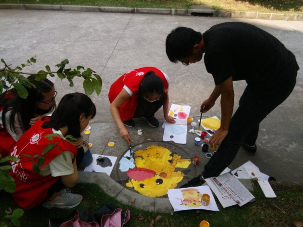 五月,少不了热情似火的骄阳,更少不了热情似火的公益人;校园,少不了色彩缤纷的夏日,更少不了色彩缤纷的公益涂鸦活动!2016年5月25日下午13:00,由孟宪承书院公益中心举办的“‘涂’写孟想,‘绘’聚心灵”井盖涂鸦活动圆满完成啦!孟宪承书院美术教育专业的同学与书院的涂鸦志愿者一起,成功地将本科生公寓19、20、21号楼楼前的六个井盖涂抹上夏日阳光快乐的色彩,更好地弘扬了“快乐公益”的公益精神。