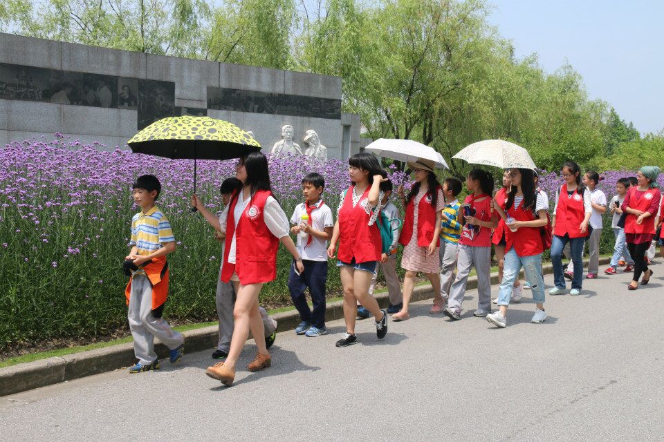在游览校园的过程中,志愿者们贴心地为小朋友撑着遮阳伞,亲切地解答小朋友的的问题,轻松愉快地和他们聊天。路两旁盛开的柳叶马鞭草让本就充满欢歌笑语的旅程变得更加美好,盛开的花朵,绽放的笑容,美好的旅程正在继续。
