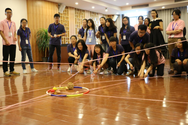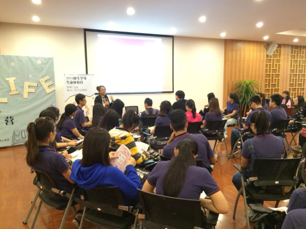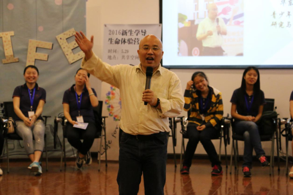 体验营第二项环节是由华东师范大学心理与认知科学学院张麒老师主持举办团体拓展及生命教育主题沙龙。在“模拟进化”、“生命获取”、“生命接力”等环节中,学导们不仅感受着生命的珍贵,并且懂得了生命间的尊重与联系。在随后的反思过程中,张老师请学导们分享在游戏中的感受,并与学导们分享自己对于生命教育的理解。