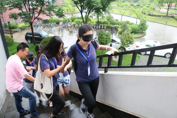 开场前,学导蒙上眼睛,由工作人员引领进入共享空间202的活动现场,此举也让学导亲身感受新生进入大学初期时的迷茫和不知所措的心理状态。