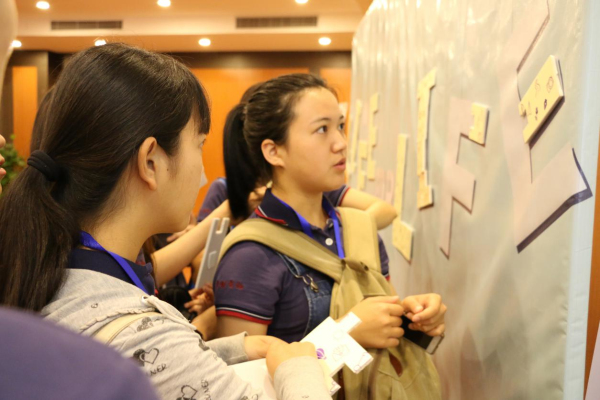 在严诗茹学姐的分享后,体验营进入实战阶段,营员以小组为单位,对于学导工作相关涉及的问题进行集中讨论。导师协调中心也特地邀请八位高年级学导 ,对于各小组进行指导。在高年级学导的帮助下,新生学导们深入思考如何让新生更好地适应并规划自己的大学生活,并进行小组展示。