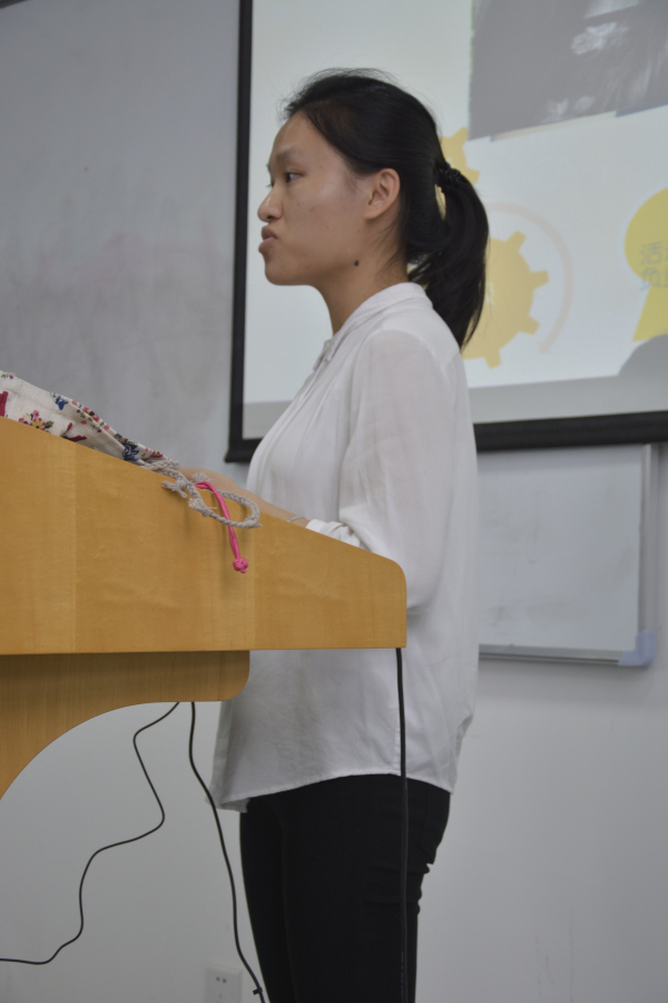 辩论爱好者协会的负责人一上场就尽露了“辩论者”的气场,她以响亮有力的声音介绍了辩论爱好者协会的情况及展望,着重强调了人员分工的安排,如何协调分配“辩论者”与“后勤人员”工作的问题是社团发展过程中“专业化”的体现。在提问环节,负责人对社团发展深入后会产生的财务、人员等问题进行了回答,也就其问题与嘉宾进行了探讨,值得思考。