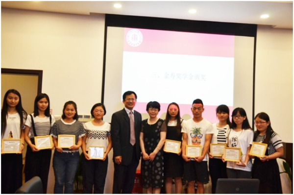 金寿奖学金获奖同学与胡宏昌先生及吴薇老师合影