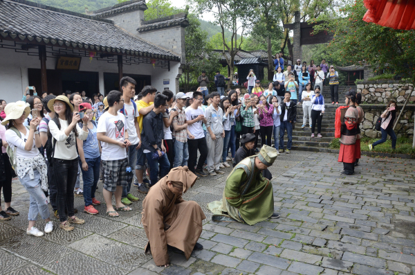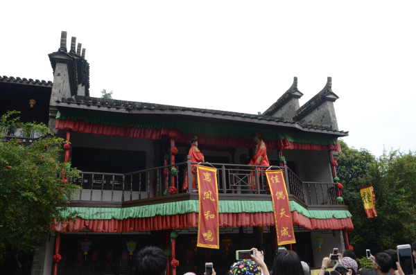 令大家拭目以待的抢亲节目终于开始了,楼下的男生们也跃跃欲试参与其中,大概想做那个新郎官吧。